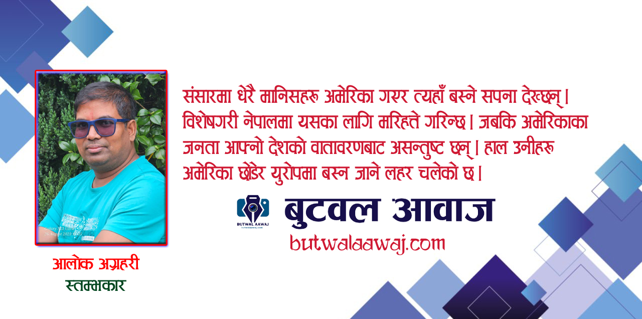 संसारमा धेरै मानिसहरू अमेरिका गएर त्यहाँ बस्ने सपना देख्छन्। विशेषगरी नेपालमा यसका लागि मरिहत्ते गरिन्छ । जबकि अमेरिकाका जनता आफ्नो देशको वातावरणबाट असन्तुष्ट छन् । हाल उनीहरू अमेरिका छोडेर युरोपमा बस्न जाने लहर चलेको छ।