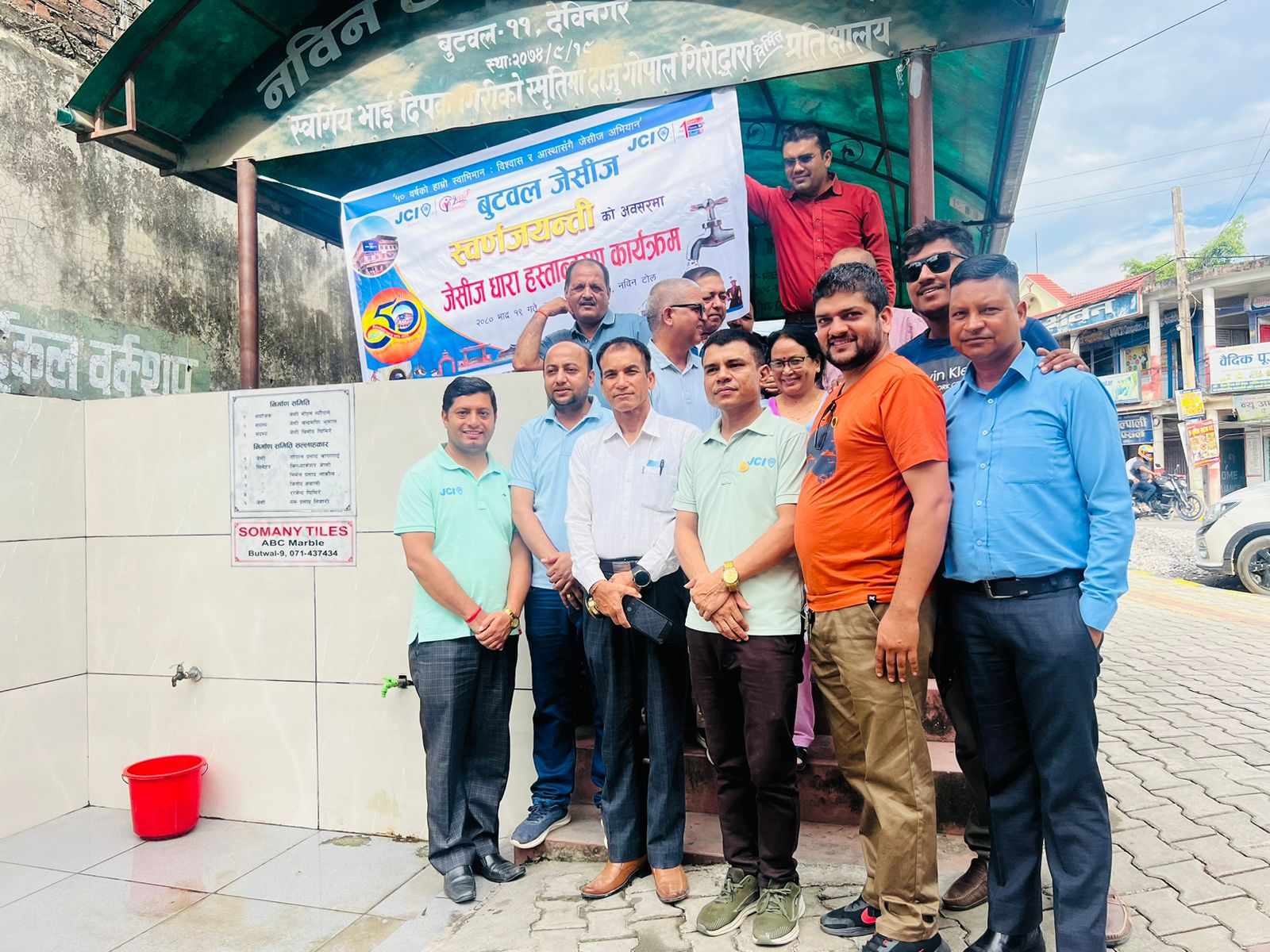 बुटवल जेसीजले आफ्नो ५० औं स्थापना दिवस स्वर्णजयन्तीको अवसरमा आयोजित साप्ताहिक कार्यक्रम अन्तरगत बुटवल देविनगरस्थित नविनटोललाइ जेसीजधारा हस्तान्तरण गरेकोछ । बुटवल जेसीजका अध्यक्ष हरि विक्रम कुवरले बुटवल उपमहानगरपालिका वडा न ११ का वडा अध्यक्ष रामचन्द्र क्षेत्रीको प्रमुख आथित्यमा नविन टोलका अध्यक्ष बिष्णु थापालाइ धारा हस्तान्तरण गर्नुभएको थियो।
