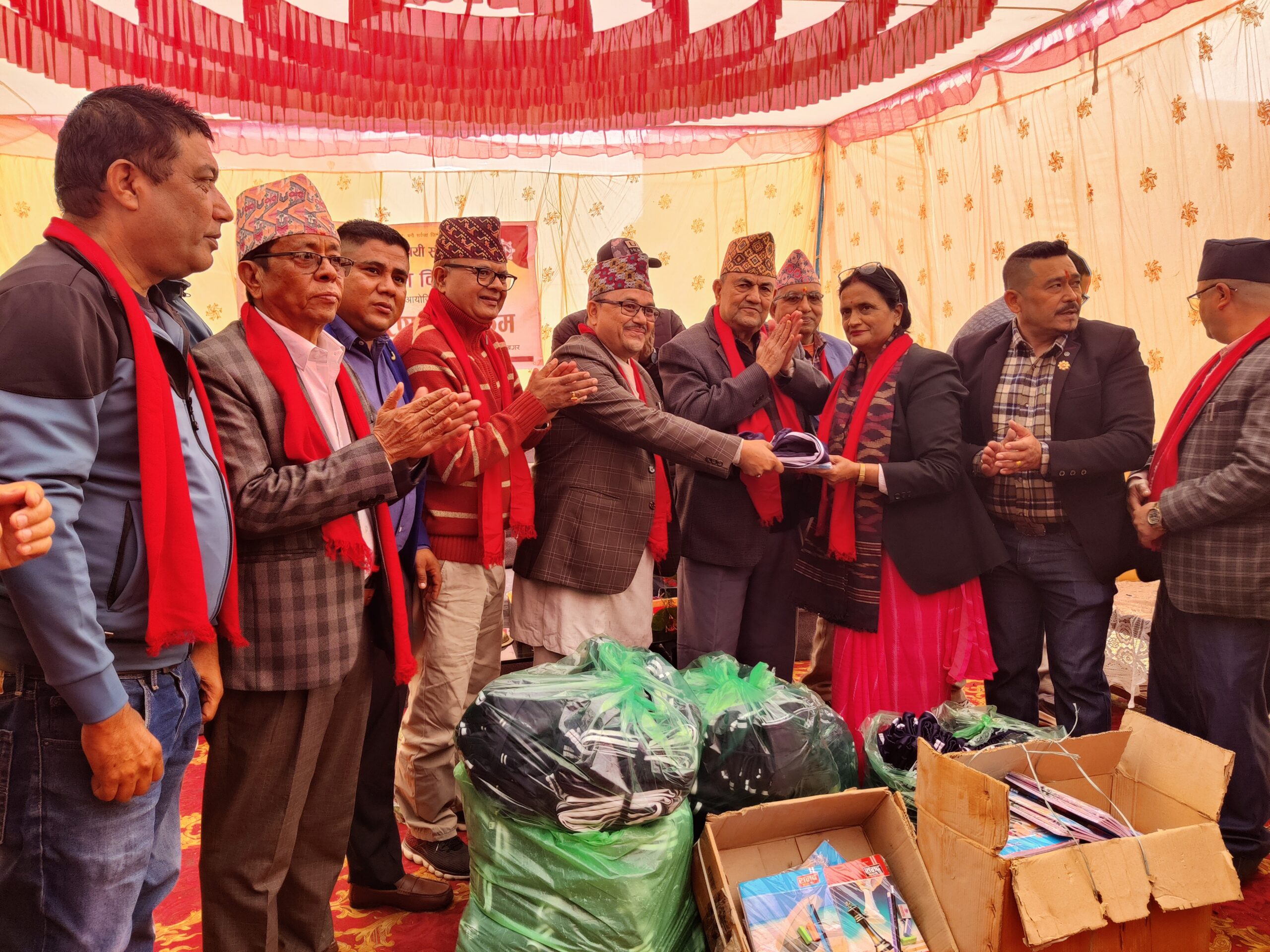 एक कार्यक्रमका बिच नेपाल निर्माण ब्यवसायी महासंघका केन्द्रिय उपाध्यक्ष टोप बहादुर रायमाझी, कार्यक्रममा बुटवल उपमहानगरपालिका वडा नं ११ का वडासदस्य युवराज राना, लुम्बिनी निर्माण ब्यवसायी संघ रुपन्देही जिल्ला अध्यक्ष मन्जु भुषाल, लुम्बिनी निर्माण ब्यवसायी संघ बुटवलका अध्यक्ष बुध्दिराज थापा, संघ संरक्षक भिम बहादुर श्रेष्ठ, जिल्लाका सल्लाहकार जबिन कक्षपति, जिल्ला उपाध्यक्ष बिष्णु सुब्बाले विद्यालयका प्रधानाध्यापक कमला ज्ञवालीलाई सहयोग सामाग्री हस्तान्तरण गरे ।