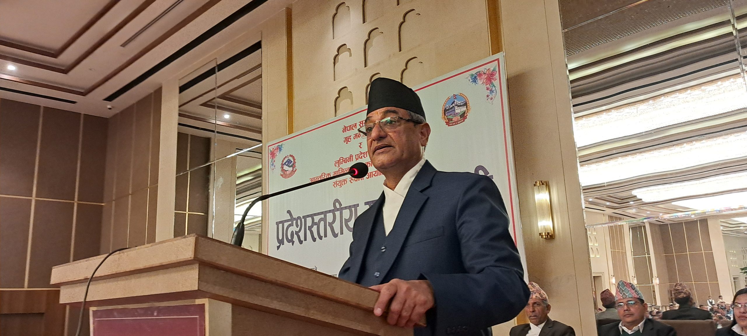 लुम्बिनी प्रदेश स्तरीय सुरक्षा गोष्ठिको मंगलबार भैरहवामा उद्घाटन गर्दै गृहमन्त्री लेखकले लोकतन्त्रको पहिलो सर्त शान्ति सुरक्षा भएको र शान्ति सुरक्षाको अग्रपंक्तिमा रहेको प्रहरी प्रशासनले गम्भिरता पूर्वक काम गर्न आग्रह गर्नुभयो ।