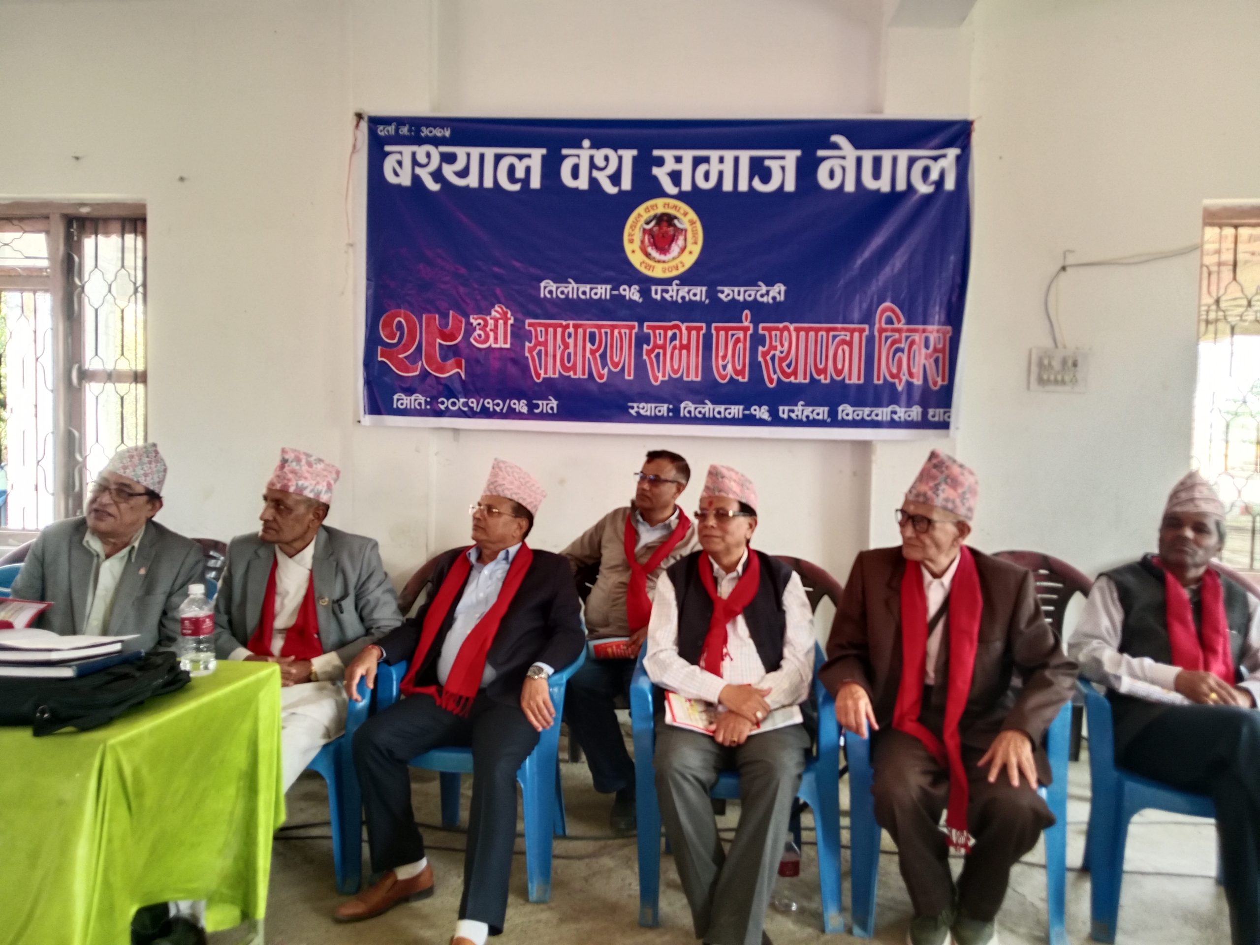 बश्याल वंश समाज नेपालको २९ औँ साधारणसभा तथा स्थापना दिवस शनिबार सम्पन्न भएको छ । रुपन्देहीको तिलोत्तमा नगरपालिका–१६ पर्सहवास्थित केन्द्रीय कार्यालयमा एक कार्यक्रमको आयोजना गरी साधारणसभा तथा स्थापना दिवस मनाइएको हो ।